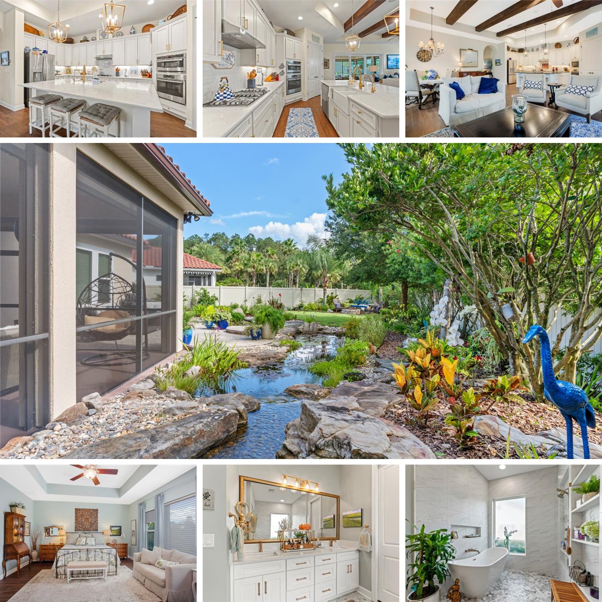 Stunning Spanish-Inspired Home with a show-stopping Koi Pond in Nocatee Town Center Ever dreamed of a backyard oasis with a mesmerizing koi pond? This breathtaking Serena plan home delivers just that and more! Nestled on one of the largest lots in Siena at Nocatee. Boasting over $120,000 in premium upgrades, this residence seamlessly blends indoor elegance with outdoor Florida living. Step into a warm, inviting interior featuring neutral paint, wood grain tile floors, and a spacious patio perfect for entertaining. The professionally designed landscape, crafted by Earthworks of Jacksonville, FL, showcases a stunning, low-maintenance koi pond with two waterfalls and a thriving, mature ecosystem where vibrant fish playfully thrive, complemented by exquisite landscaping lighting.
