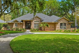 Welcome to Bayside living at its finest! This beautifully updated all-brick home offers 4 bedrooms / 3 baths, completely renovated with modern finishes throughout. Double entry doors open to a bright, inviting foyer with rich wood floors that flow seamlessly through the main living areas. Spacious family room features vaulted ceilings, a charming wood-burning fireplace, and stunning views of the newly added saltwater pool, perfect for entertaining or relaxing. The thoughtfully designed layout offers a split bedroom floor plan, and both open gathering spaces and private retreats. Step outside to your resort-style oasis and enjoy Florida living year-round. Located in a charming gated community with tree-lined streets, residents can enjoy the pool, clubhouse, tennis courts, playground, kayak launch, and access to the community dock on the St. Johns River with the most beautiful sunsets! Water included in the HOA. Top-rated school district in the state, and a truly exceptional lifestyle