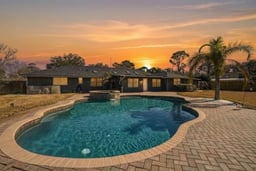 This sprawling single-story retreat in the guard-gated community of The Woods offers the perfect blend of modern upgrades and convenience. Situated on a lush 0.46-acre lot, this is one of the largest floor plans in the neighborhood, designed for those who value space, privacy, & an active lifestyle. The Ultimate Layout Space for Everyone: 4 bedrooms, 3 bathrooms, including a second primary / in-law suite with its own en-suite bath. Work & Play: A massive dedicated home office for the remote professional and a large sun room that brings the outdoors in. Chef's Dream: The kitchen has been fully renovated & opened up, featuring a huge center island, expanded cabinetry, & newer stainless appliances (stove, microwave & dishwasher 2022/2023). Restorative Suites: The over-sized owner's suite boasts an updated en-suite bathroom with a large shower & closet. Both guest bedrooms have also been tastefully updated.