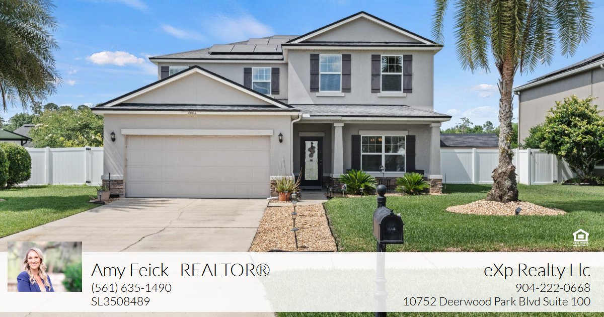 Welcome to this spacious, well-maintained home featuring open-concept living and a large, functional kitchen with built-in double ovens and a separate cooktop. The kitchen flows seamlessly into the living room which has sliding glass doors out to an oversized covered patio—perfect for entertaining or simply enjoying peaceful lake views. The primary suite is located downstairs for added privacy. Enjoy a spa like experience in the large bathroom with rain shower head and added jets. Upstairs offers three generously sized bedrooms, two full bathrooms, a convenient laundry room, and a large loft—ideal for a second living area, office, or playroom. An extra bonus for you is the solar panels drastically reducing your utility bill to under $50 a month! Located just a 15-minute drive from Oakleaf Town Center, you'll have easy access to a variety of shopping, dining, and everyday conveniences. Seller offering 10K towards buyer's closing cost or rate buy down!