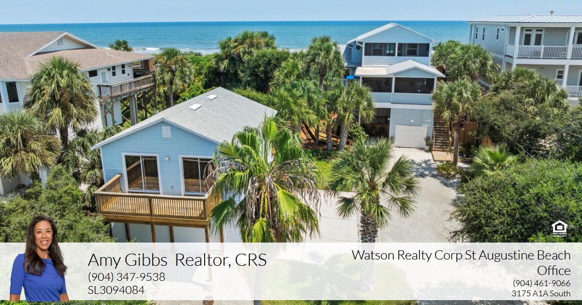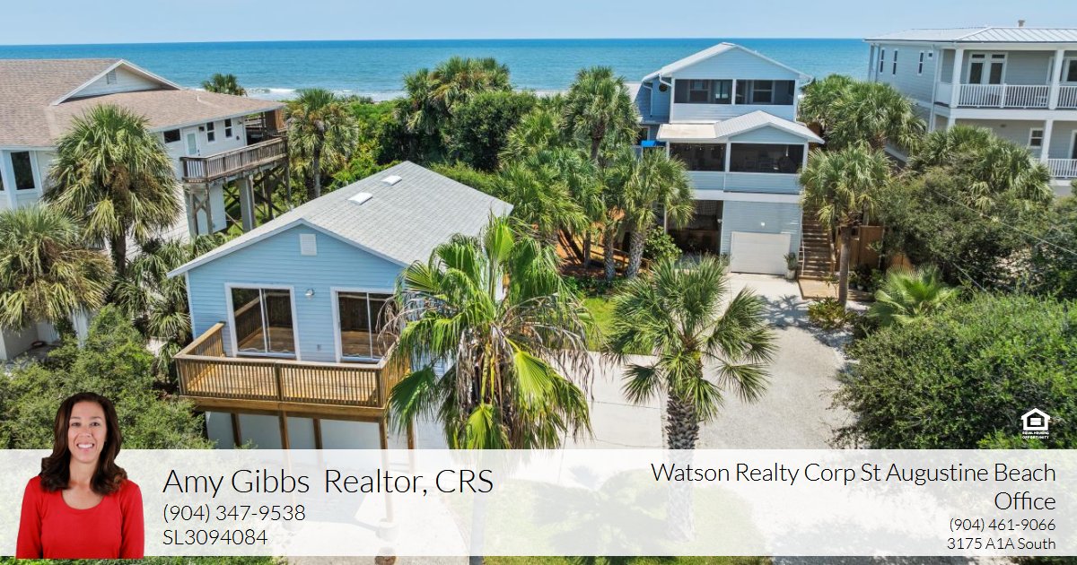 From sunrise to sunset, this quintessential beach house at Crescent Beach, FL, beckons you to relax and unwind. Nestled on an incredible .93-acre ocean front lot, the property has been thoughtfully designed throughout the years with an emphasis on capturing those breathtaking views of both the Atlantic Ocean and Intracoastal Waterway and seamlessly integrating its indoor and outdoor living spaces to maximize the ocean front lifestyle. A private deck over majestic dunes blanketed with swaying sea oats and home to much of Anastasia Island’s protected species, provides your very own beach access. Two ocean side decks on both the main and second floors invite you to pull up a chair and a morning mug as the sun emerges, the pelicans dive for their breakfast, and dolphins glide along the waves. You can also head straight to the shore for beach combing, fishing, and soaking up the sun. During the spring through the fall, you’ll witness sea turtle crawls, nests, and hatchlings just beyond the dunes! If sunsets are your fancy, two oversized west facing screened porches are the perfect place to watch nature’s daily show of colors as each day comes to an end. If that light show isn’t enough, you’ll even find a hot tub on the main floor porch to take a soak during the show! The main floor’s screened porch also features an elevator for ease of access. When you’ve finally made you way back inside the 2,270sf home, you are surrounded by comfort and style. Solid oak flooring encompasses the main floor spaces. The white coastal kitchen is anchored by quartz countertops and an island counter crafted from vintage Kentucky barn wood. Every space was designed to bring the outdoors inside. Blanketed with wall to wall east facing windows, the serenity of the ocean is yours to enjoy. When temperatures drop, the gas fireplace creates light and warmth for the main floor living area. Two bedrooms and two full bathrooms round out the main floor living space. As extraordinary as the views are on the main floor, head upstairs for even more phenomenal views from the primary bedroom, which encompasses the entire second floor! If you are looking for more space for family or guests, this property also includes a detached 2-car garage with an upstairs 720sf one bedroom suite/apartment. Tucked along the scrub oaks to the west, it features double sliders and an open porch with Intracoastal views. Come home to Crescent Beach today for this three bedroom, three bath main home, along with a one bedroom, one bath detached suite and a total of 3-car garage spaces between the two.